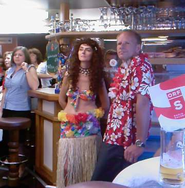 Am 11.7.2008 waren Samira und ihr Mann Horst wieder einmal am Tanzschiff am Wolfgangsee. Diesmal in hawaiianischer Aufmachung. Wollten sie damit die Stammhörer Monica und Steven aus Hawaii grüßen, die Reinhard Pirnbacher im Jahr 2007 erwähnt hat?