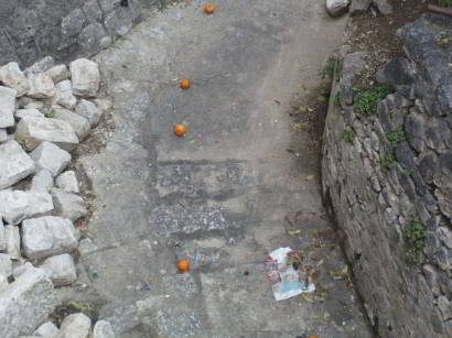 Aber wer wirft denn hier Orangen in den Burggraben? Dass der Orangenbaum oberhalb seine Früchte wie ein Apfelbaum zum Teil verliert, habe ich im ersten Moment nicht bedacht.