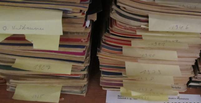 Auch viele Zeitschriften rund um das Radio sind im Bücherregal des Radiomuseums zu finden. Schön nach Jahrgang sortiert.